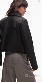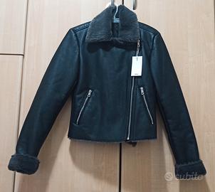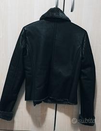 Giacca stile aviatore effetto montone nera, in pelle sintetica con finta pelliccia grigio scuro. Taglia S, Mango. Nuova con cartellino, mai indossata. Vendo per taglia errata