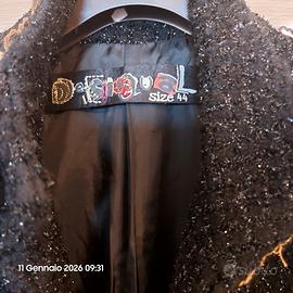 giacca stile chanel colore nero con intarsi di metallo e tessuto.