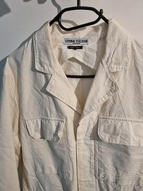 Vendo giacca originale Stone Island bianca, leggera e perfetta per la primavera o le serate estive. Design casual e raffinato, con il classico effetto stropicciato tipico del modello – non è spiegazzata, è proprio il suo stile! Condizioni generali buone: indossata con cura. Nota importante: i bottoni delle tasche superiori sono stati sostituiti con due bottoni non originali, ma non sono visibili perché coperti dalla patta della tasca. Tutti gli altri bottoni sono originali. Un capo versatile e di carattere, per chi ama lo stile unico firmato Stone Island.