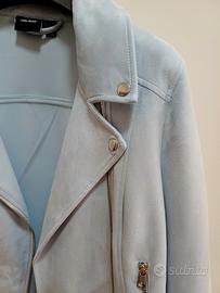 Giacca in suede celeste 'Vero Moda'. Taglia M, vestibilità corta e aderente, ottima per tg. 42-44 italiane. Chiusura con cerniera. Utilizzata una sola volta per un evento.