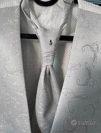 Giacca Swarovski Scribano giacca giacca Abito da uomo / Matrimonio / evento Taglia 50 in condizioni impeccabili Comprato con tutto il completo per 1700€ 3 pezzi. Ma la taglia è troppo grande per me. Grande qualità italiana Collaborazione con Swarovski per i bottoni del gilet effetto diamante. Vende il panciotto e la cravatta. Colore: Bianco/Avorio Non l'ho mai indossato, solo provato. Le piccole pieghe vanno stirate.