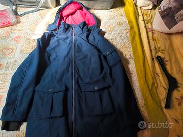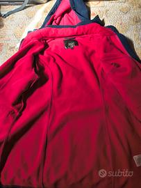 La giacca è un modello softshell da donna, un capo tecnico ideale per l'escursionismo e le attività all'aperto. Si distingue per il tessuto esterno elastico blu navy, che offre protezione da vento e pioggia leggera, e per il caldo interno in pile rosa fucsia a contrasto. Materiale: Tessuto softshell a tre strati, traspirante e idrorepellente. Dettagli Tecnici: Cappuccio staccabile e regolabile, tasche frontali con patta e tasca aggiuntiva sulla manica sinistra. Design: Taglio sciancrato per una vestibilità femminile, con polsini elasticizzati con copertura mano per trattenere il calore La giacca viene spedita lavata! per ulteriori foto o informazioni chiedere in chat😊 taglia 48