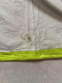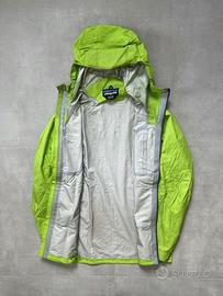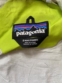 Giacca tecnica Patagonia con membrana H2No, ideale per attività outdoor come trekking, hiking e montagna. Struttura hardshell leggera progettata per offrire protezione da vento e pioggia, mantenendo al tempo stesso una buona traspirabilità. Design tecnico con cappuccio regolabile, zip impermeabili e tasche funzionali. Colore verde acceso molto distintivo, perfetto sia per visibilità in outdoor che per outfit gorpcore e streetwear tecnico. Capo leggero e packable, ideale da portare sempre con sé durante escursioni, viaggi o utilizzo quotidiano. Taglia S uomo. La giacca si presenta molto bene esternamente. Sono presenti una piccola macchia all’altezza del polso e un leggero alone nella zona lombare, entrambi visibili in foto per trasparenza ma poco evidenti una volta indossata. Per il resto il capo è in ottime condizioni e completamente funzionale.