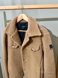 Vendo splendida giacca, stile "trucker" o "camicia giacca" (shacket), in morbido e caldo tessuto effetto orsetto/montone sintetico color beige/cammello. Ideale per la mezza stagione o come strato aggiuntivo in inverno.