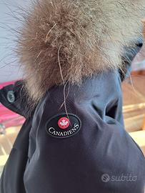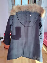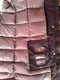 Tessuto tecnico impermeabile e piumino d'oca interno.