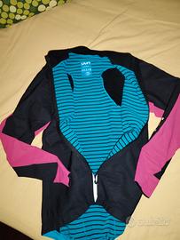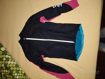 Giacca termica anti pioggia invernale/primaverile da bici marca UYN taglia M. Estremamente morbida e comoda Molto isolante grazie al rivestimento interno che è altrettanto traspirante e morbido. Protegge molto bene dal freddo e dal vento e dalla pioggia leggera. Vendo per inutilizzo, usata pochissimo.