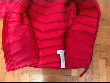 Giacca termica da donna 90 grammi Stradivarius color rosso geranio soffice leggera e caldissima adatta anche come sotto cappotto e tutte le stagioni. 2 tasche esterne con cerniera+ 2 tasche interne molto grandi. Taglia L nuova. Modello sciancrato