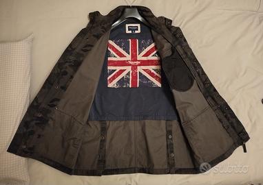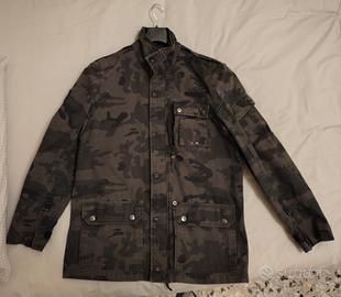 Giacca Triumph Motorcycles camouflage taglia 56, adatta per stature da 1.78 a 1.86. Dotata di 2 tasche basse anteriori con pulsanti e 1 tasca alta sinistra con zip. Nella parte bassa posteriore sono presenti 2 pulsanti per lato utili per rendere la giacca apribile per una comoda seduta. Sui gomiti sono presenti, all'interno, tasche per protezioni morbide da moto. usata poco, ottime condizioni