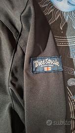 Bellissima giacca mezza stagione Three-Stroke, di colore nero con zip rosse.
