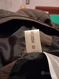 trapuntino donna media lunghezza, colore grigio-verde, chiusura con cerniera e automatici, spacchi laterali sul fondo che si possono aprire con la cerniera. Due tasche interne, cappuccio removibile tramite cerniera e fornito di pelliccia sintetica anch'essa staccabile. Taglia 54. Caldo ma leggero.