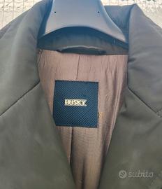 Giacca da donna leggermente imbottita ma nel contempo isola termicamente molto bene,firmata Husky, sportiva colore verde militare con cintura in vita e fibbia con logo.