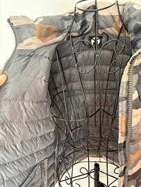 Giacca trapuntata di ¿Color tg M, motivo mimetico in varie tonalità di grigio, marrone, beige e nero, materiale è poliestere, resistente al vento e all'acqua. Imbottitura leggera in piumino, molto calda. Taglio aderente, con cerniera frontale e due tasche laterali con cerniera, collo alto e cappuccio rimovibile. In ottime condizioni #¿color #giaccatrapuntatadonna #giaccatrapuntata