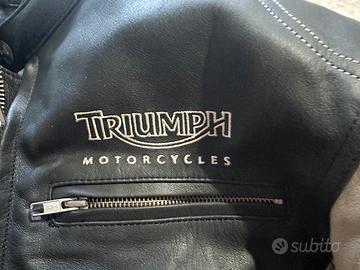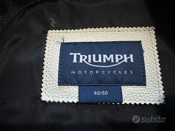 giubotto triumph in pelle con protezione gomito spalle . gilet interno sfoderabile per le giornate più calde . tasche interne con cerniere . colore nero e panna . taglia 40/50