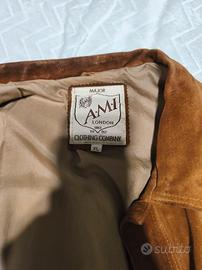Stile Iconico Anni '90/00: Il Classico Giubbotto in Suede! Perfetto per Mezza Stagione e Look Casual. Vendo questa bellissima giacca in pelle scamosciata (Suede), modello Trucker (simil-Jeans), prodotta dalla storica marca A.M.I. London Clothing Company (Major AMI London since 1982). Un capo vintage intramontabile, ideale per la primavera, l'autunno o le serate fresche d'estate. Il colore cammello/marrone caldo si abbina facilmente a qualsiasi outfit.