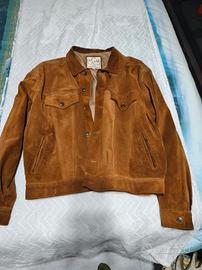 Vendo questa bellissima giacca in pelle scamosciata (Suede), modello Trucker (simil-Jeans), prodotta dalla storica marca A.M.I. London Clothing Company (Major AMI London since 1982).