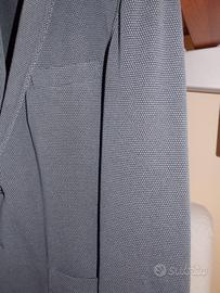 Giacca TRUSSARDI, colore grigio/blu, taglia 52, giacca sfoderata estiva in cotone (particolare della trama)
