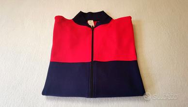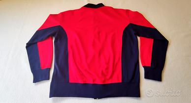 Design iconico con color block rosso/blu, zip robusta originale, tessuto acrilico (100%) resistente tipico dell'abbigliamento sportivo militare anni '80.