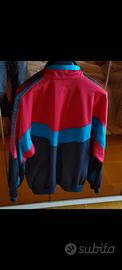 Giacca tuta Nike vintage anni '90, modello track jacket originale dell'epoca. Color-blocking iconico rosso, turchese, navy, logo ricamato e banda Just do It sulla manica, tipica delle collezioni mid-90s. Fit comodo, tessuto leggero, perfetta per look streetwear autentici. La giacca è in buone condizioni ha solo un micro foro interno della manica sinistra come potete vedere in foto. Tg L abbondante tendente a una XL. Io sono alto 1,75 x 70 kg quindi regolatevi in base alle misure che sto per darvi. Misura spalle 60, lunghezza giacca 70, misura ascelle 55, lunghezza maniche 55.