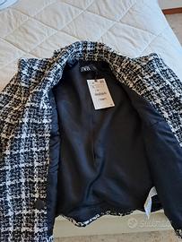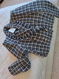 Giacca da donna tweed con bottoni oro stile Chanel. Colore bianco e nero. Nuova con etichetta