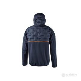Giacca ibrida traspirante e antivento. Chiusura centrale con zip impermeabile. Cappuccio fisso e regolabile, polsini elasticizzati. Piumino trapuntato con tecnologia seamless. Fodera interna in nylon e micropile. 2 ampie tasche frontali chiuse con zip fluo e 1 tasca sul petto chiusa con zip impermeabile. Due ampie tasche interne. Colore blu, taglia XXL.