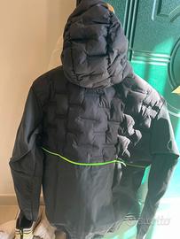 Ibrida perché realizzata con busto e maniche in poliestere 96% e spandex 4%, mentre il cappuccio, il petto e le spalle sono prodotte in 100% nylon 20D.