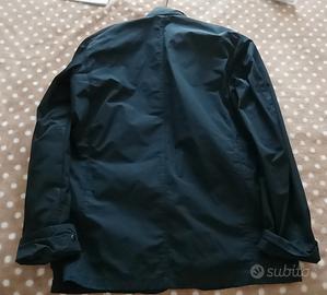 Giacca primaverile/estiva uomo, tipo sahariana, taglia Media, colore blu scuro, marca Luca d'Altieri, con quattro tasche sul davanti ed una tasca a zip, una tasca interna, non foderata internamente.