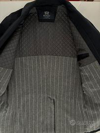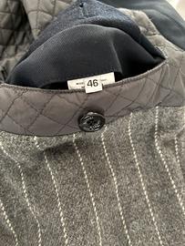 Vendo Giacca Lunga Boggi colore blu scuro imbottitura grigia righe bianche Taglia 46 in buone condizioni