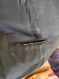 Vendesi giacca uomo Canali, grigia scura tendente al nero, in lana, taglia 54, in buono stato generale ad eccezione di un buco sul lato destro della fodera interna che non riguarda però la tasca (difetto riportato in foto) e del bordino leggermente consumato del taschino interno. Presenta le seguenti misure: