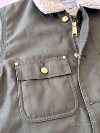 In vendita un iconico Phoenix Coat firmata Carhartt WIP (Work In Progress). Questa giacca reinterpreta il classico stile workwear Carhartt con un taglio moderno e materiali premium, perfetta per un look streetwear sofisticato e resistente. Dettagli Tecnici e Design: • Modello: Phoenix Coat. • Linea: Work In Progress (WIP) – la divisione fashion e lifestyle del brand. • Colore: Verde Oliva/Militare (un classico intramontabile). • Taglia: S (International) – Vestibilità regular/comoda, tipica del brand. • Materiale Esterno: Robusto canvas di cotone (Duck Canvas) resistente all'abrasione. • Fodera: Interno e colletto completamente rivestiti in morbida pelliccia sintetica (Sherpa/Pile) color crema, che garantisce eccellente isolamento termico. • Dettagli Premium: • Chiusura centrale con zip nascosta e bottoni a pressione con logo "Carhartt" inciso in color oro opaco. • Iconica etichetta quadrata con logo Carhartt cucita sulla tasca del petto. • Quattro tasche frontali funzionali. • Fodera delle maniche trapuntata per facilitare la vestibilità. Condizioni dell'Articolo: • Condizioni: Molto Buone/Eccellenti. Il capo è stato indossato pochissimo e conservato con cura. • Estetica: Il canvas esterno è in ottime condizioni, senza macchie, strappi o scolorimenti significativi. Le cuciture sono perfette. • Interno: La fodera in pelliccia sintetica è pulita, morbida e non presenta segni di usura o appiattimento (pilling). • Hardware: Zip e bottoni funzionano perfettamente e non presentano graffi evidenti.