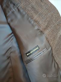 Giacca uomo firmata Corneliani, in fresco lana e cashmere, Principe di Galles marrone e rigato blu, particolari in renna, nuova mai indossata, taglia 52, vendo a prezzo affare