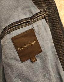 Vendo giacca da uomo David Mayer in tessuto denim blu scuro e taglia 50, rever a lancia (punta).