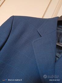 Giacca uomo in fresco lana colore blu con quadri, a tre bottoni. nuova con cartellino Made in Italy tg 50