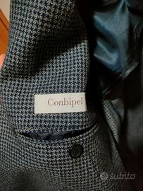 Giacca da uomo firmata Conbipel, taglia 50, dal taglio classico ed elegante. Colore blu/grigio con raffinata fantasia micro pied-de-poule, ideale sia per outfit formali che smart casual. Strutturata ma confortevole, con rever classico, tasche frontali e fodera interna. Tessuto di qualità, ben conservata e senza difetti evidenti. Perfetta per ufficio, eventi o abbinata a jeans per un look più moderno.
