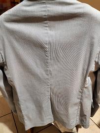 Giacca uomo 2 bottoni slim fit made in Italy a righe piccole bianche e blu appena ritirata dalla tintoria. Tutto come da foto.