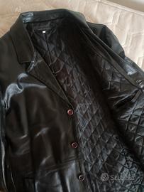 Giacca uomo in pelle nera e imbottita, giacca elegante lunga, giacca Matrix come nuova, misure : taglia L 140 lungo manica 67 spalle 54 vestibilità lineare