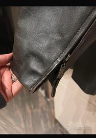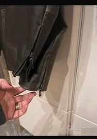 Giacca in vera pelle in buono stato con cerniera cetrale ecerniere sui fianchi e sulle maniche collo in pelo colore martone