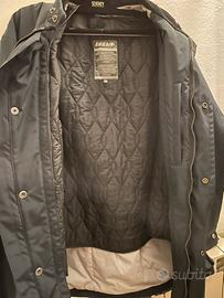 Giacca BREMA uomo taglia 52. Colore blu, tessuto tecnico resistente e impermeabile. 4 tasche frontali chiusura con bottoni a pressione (con logo). Collo in velluto. Polsini con bottone a pressione e chiusura regolabile. Due tasche interne e due posteriori. Foderata con gilet trapuntato rimovibile con zip. Logo ricamato su tasca sx frontale. Doppia chiusura frontale: cerniera e bottoni a pressione. Mai indossata, conservata pari al nuovo. Disponibile ad inviare ulteriori foto e dettagli.