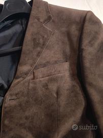 Giacca uomo invernale in velluto liscio Massimo Rebecchi, colore marrone, taglia 48, due tasche davanti più taschino, spacco centrale dietro.
