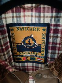 Giacca uomo capospalla giacca uomo capospalla di colore marrone marchio italiano Navigare leggermente imbottito. colletto in velluto a coste marrone e una fodera interna a scacchi, ideale per uno stile casual. Misure vedi foto Usato ma conservato bene, cerniera funzionante!