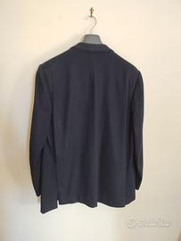 Vendesi giacca uomo Luigi Carosi, blu scuro, in lana con effetto simil panno, in buone condizioni, probabilmente taglia 56. Presenta le seguenti misure:
