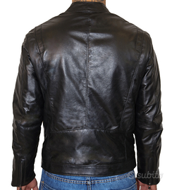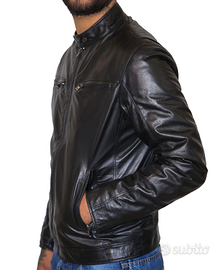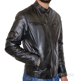 Giacca da uomo, stile classico aderente, in vera pelle ovina di nappa, colore nero, 100% Made in Italy, no ecopelle, no sintetico!