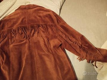 giacca da uomo in pelle scamosciata con frange vintage originale anni 90 come nuova