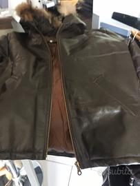 Giacca da uomo in pelle Made in Italy ( L'officina della pelle) tg L con cappuccio con contorno pelliccia vendo per inutilizzo