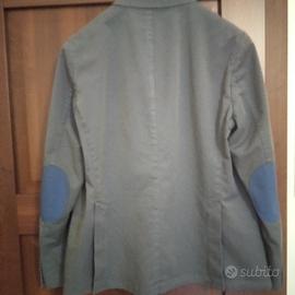 Giacca primavera/estate uomo. Semifoderata. chiusura a due bottoni, due tasche e taschino sul davanti, due spacchi sul retro, quattro bottoni ai polsi. Colore grigio. Toppe sui gomiti blu. Misura spalle:46 cm. Misura maniche: 67 cm. Marca: Manuel Ritz. Mai utilizzata. Disponibile su Torino e Chieri.