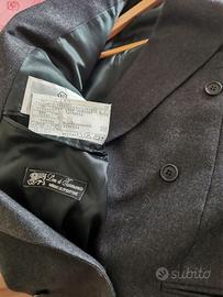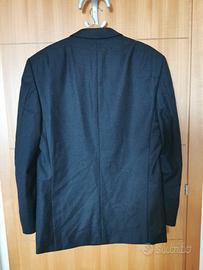 Giacca classica, elegante doppio petto colore grigio scuro in pura lana merino di Tasmania. Taglia 50. Come nuova