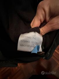 Vendo giacca nera da uomo marca Sonny Bono, taglia L. Stile casual/urban, adatta all’uso quotidiano. Materiale esterno in PVC impermeabile, interno in nylon con fodera calda tipo pile, ideale per autunno/inverno. Chiusura con zip e bottoni a pressione. Cappuccio integrato con interno caldo. Dotata di: •2 tasche laterali con zip •2 tasche con pattina e bottone Vestibilità comoda. Condizioni: ottime nel complesso. Segnalo leggeri segni di usura sul bordo interno del collo e sui polsini (dovuti alle pieghe del materiale). Il resto della giacca è in ottimo stato e perfettamente utilizzabile.