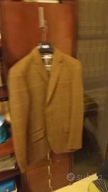 giacca in tessuto di lana spigato, mod.3 bottoni 3 tasche spacchi laterali completo di gilet, colore caldo terroso, overcheck ruggine, estetica classica/country chic. ottime condizioni
