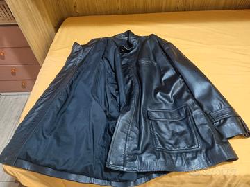 giacca nera in vera pelle da uomo taglia 60 ottima manifattura sartoriale fiorentina usato un paio di volte sottoascella cm. 77 lunghezza 85 cm. spalle 60 cm.
