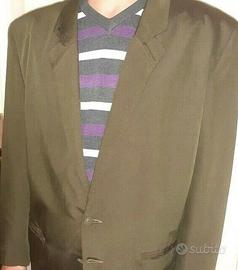 cedesi una Jacket stile elegante casual, retro moda abbigliamento men man 80s made in italy, colore verde militare, modello originale notting hill con spalline, usato del periodo. material tessuto Viscoso / Polyestere