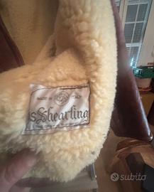 Giaccone vintage da uomo in pelle e montone con interno in pelliccia.
